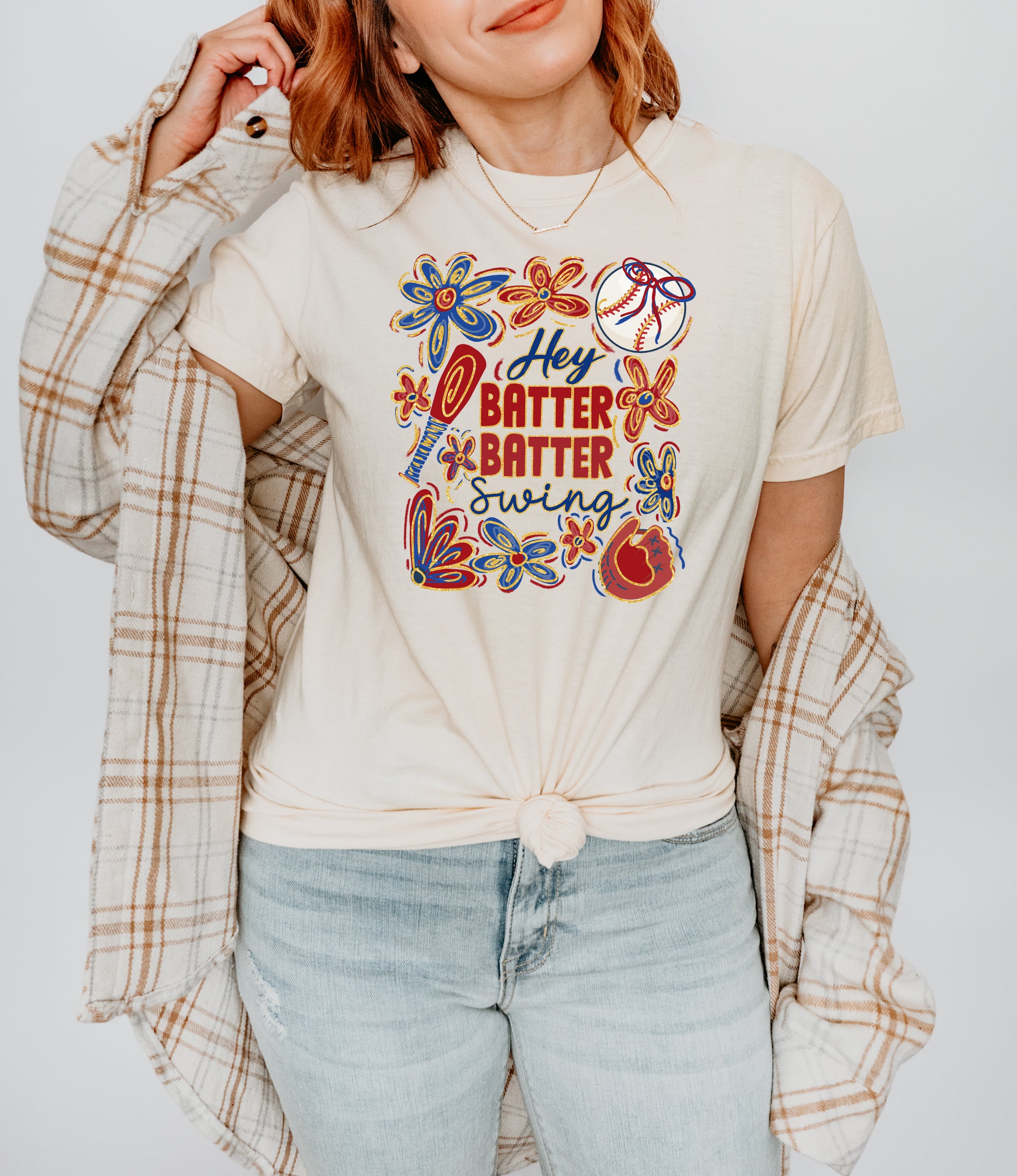 Get ready to hit it out of the park with Hey Batter Swing! Our DTF Transfer technology will have you swinging like a pro. Say goodbye to missed swings and hello to home runs. You'll be DTF - Down To Flourish!