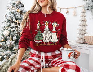 Waddle into the holidays with our Christmas Geese sweatshirt! This cozy pullover features a playful goose design that's perfect for spreading festive cheer. Soft, comfortable, and undeniably fun, it's ideal for holiday parties, casual gatherings, or lazy winter days at home. The cheerful artwork brings a lighthearted touch to your seasonal wardrobe. Whether you're a goose enthusiast or just love quirky holiday fashion, this sweatshirt is a must-have for anyone who appreciates humor and comfort wrapped into one wearable treasure.