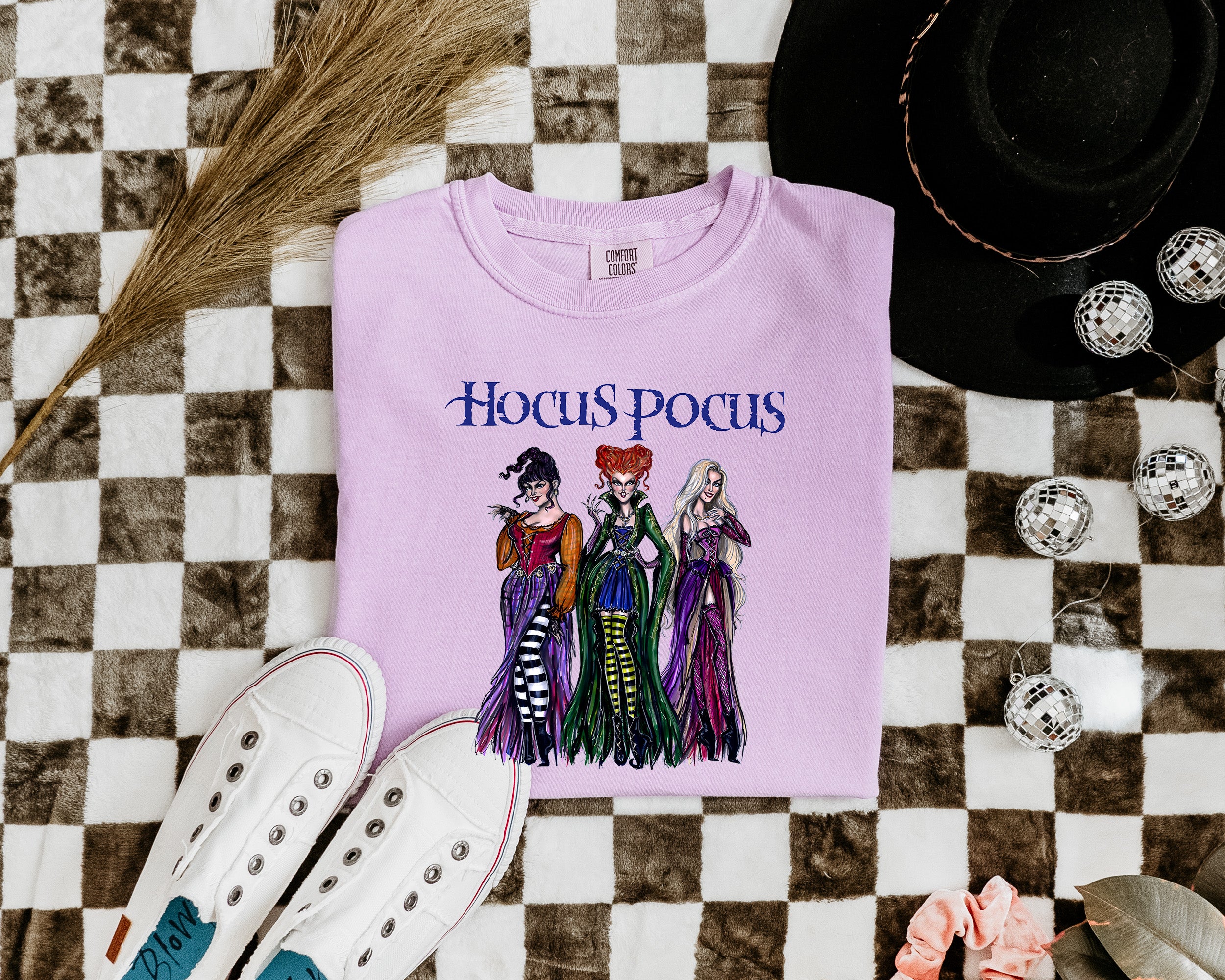 Cast a spell with our DTF Transfer - Hocus Pocus! This magical transfer features the phrase "Hocus Pocus" and three playful witches, making it perfect for all your crafting needs. Add a touch of whimsy to any project with just one transfer. Abracadabra, it's yours today!