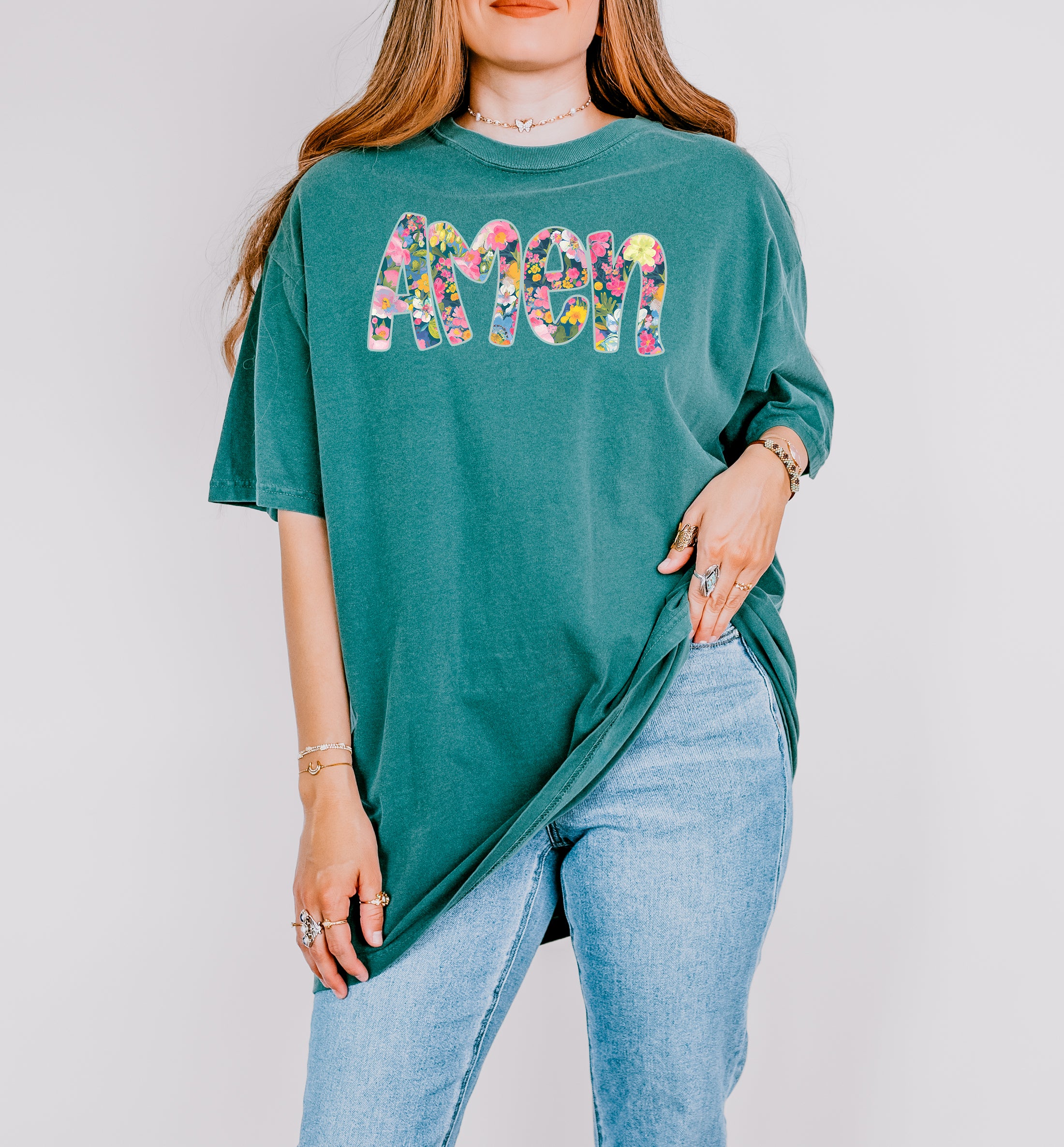 Introducing Floral Amen DTF Transfer! Say amen to this unique floral design that adds a touch of whimsy to your wardrobe. With our DTF transfer, you can easily personalize any fabric or clothing item. Get ready to bloom with style!