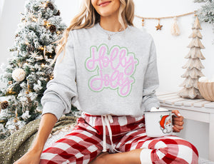 Holly Jolly Spangled Sweatshirt – festive rebellion wrapped in comfort. This crewneck takes a classic phrase and electrifies it with shimmering sequin details that refuse to blend in. Bold, unapologetic, and impossibly wearable, it's for anyone ready to celebrate on their own terms. Skip the safe choices—this is holiday style with teeth.