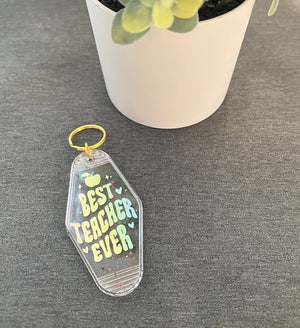 Add some personality to your keys with our Motel Keychain! Made of durable plastic with colorful vinyl lettering, this keychain measures approximately 3.5 inches tall and 1.5 inches wide comes with key ring. The perfect accessory for any quirky individual. (Keys not included).