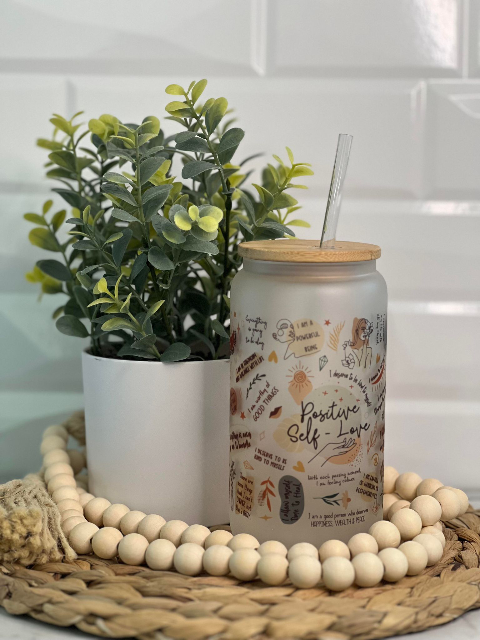 Introducing our 16oz Frosted Glass Can with Bamboo Lid and Hard Plastic Straw, designed to uplift your spirits and spread a message of “Positive Self Love.” This enchanting glass can is more than just a drinking vessel—it’s a daily reminder to embrace self-care and celebrate your uniqueness.