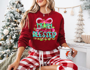 Celebrate life's greatest gifts with this Merry, Joyful, Blessed sweatshirt. A heartfelt reminder to embrace gratitude and positivity, it's perfect for anyone counting their blessings this season. Soft and inviting, this piece layers effortlessly over your favorite outfits while keeping your spirits high. Wear it as a daily affirmation that life is good, the holidays are better, and you've got everything to be thankful for.