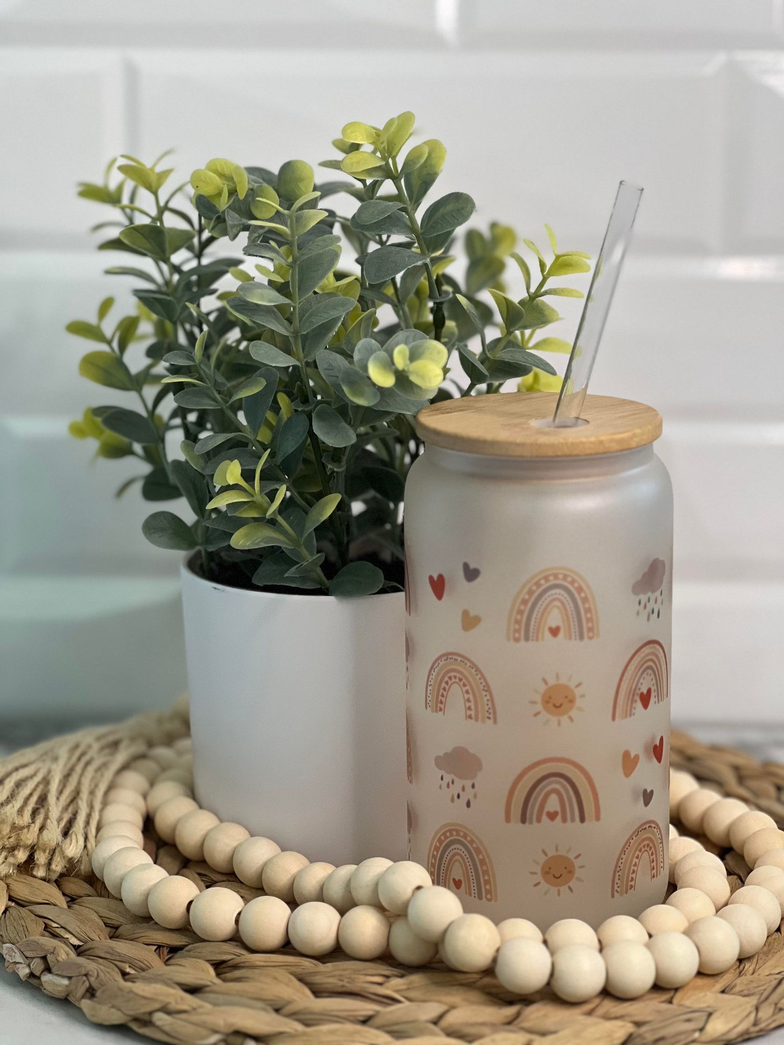 Whether you’re enjoying a refreshing iced tea or a fruity mocktail, our 16oz Frosted Glass Can with a Bamboo Lid and Hard Plastic Straw is the perfect companion for any occasion. Embrace the magic of rainbows and hearts and elevate your sipping experience to a whole new level of enchantment. Sip, smile, and let the love-filled vibes fill your day. Coffee Cups is BPA-Free & LEAD-Free. Handwash Only.