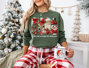 Get into the holiday spirit with this whimsical Faux Yarn-Christmas Doodle Sweatshirt, bursting with festive charm. Adorned with hand-drawn style illustrations of a cheerful tree, prancing deer, jolly Santa, and a grinning snowman, this cozy pullover captures all the magic of the season in one delightful design. The playful yarn-textured aesthetic adds a crafted, artisanal touch that feels warm and inviting. Perfect for holiday parties, family gatherings, or simply spreading seasonal joy, this sweatshirt is your ticket to festive fun.